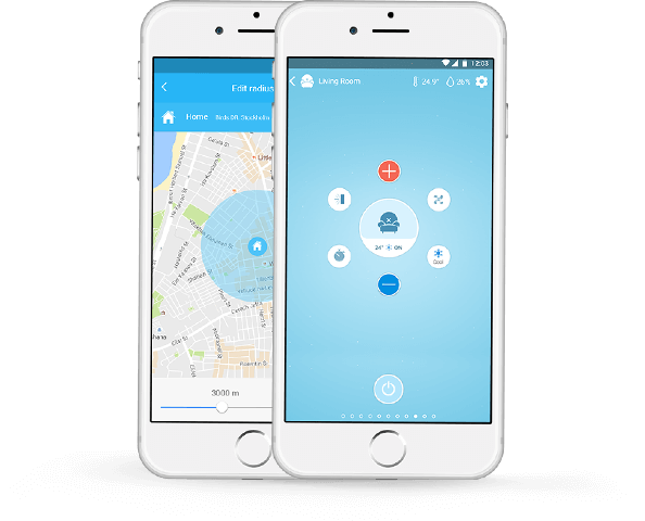 - il y a la géolocalisation, c’est à dire que si vous l’application est installée sur votre téléphone et que vous partez de votre domicile la PAC/climatisation s’éteindra, et à l’inverse quand vous reviendrais elle s’activera.