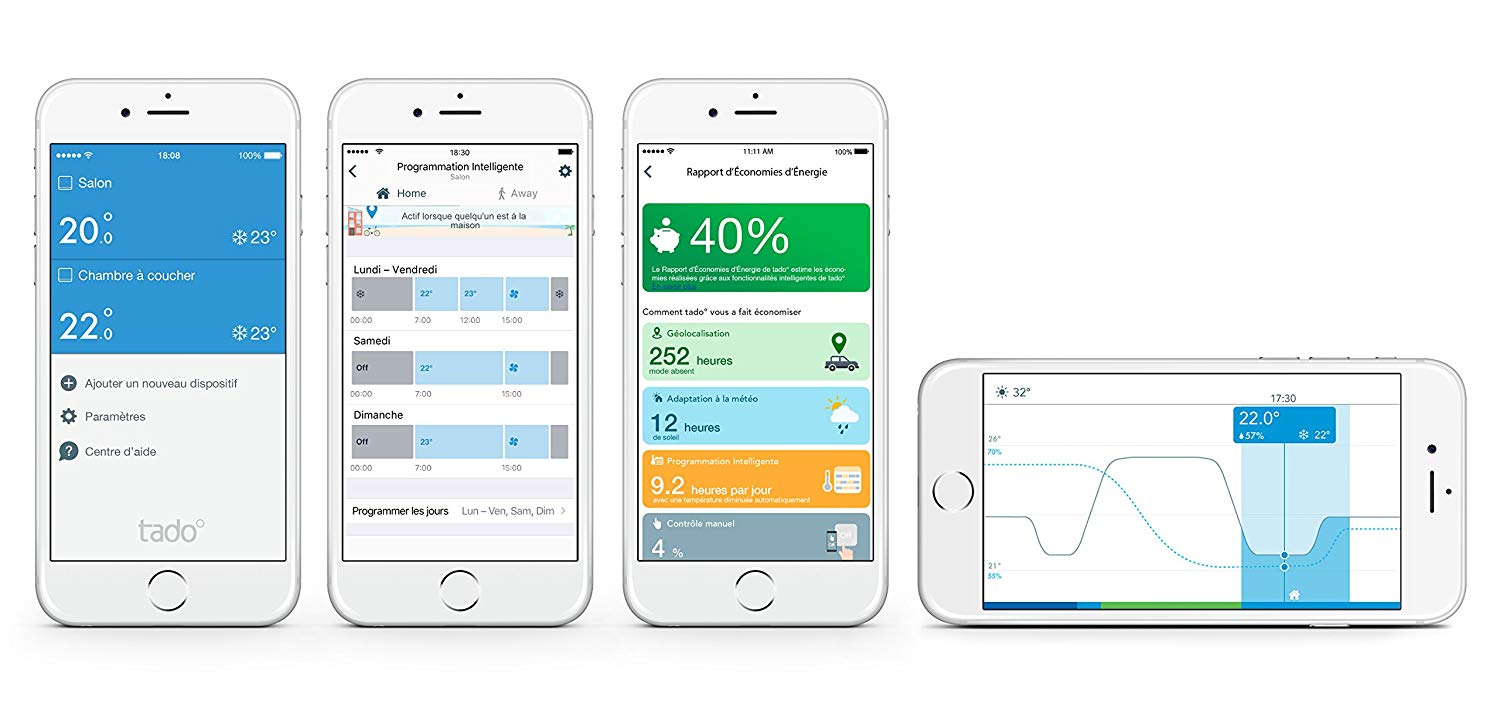 L’application est très complète, historique de température, hygrométrie, calcul (théorique) de l’économie réalisée, programmation « intelligente ».