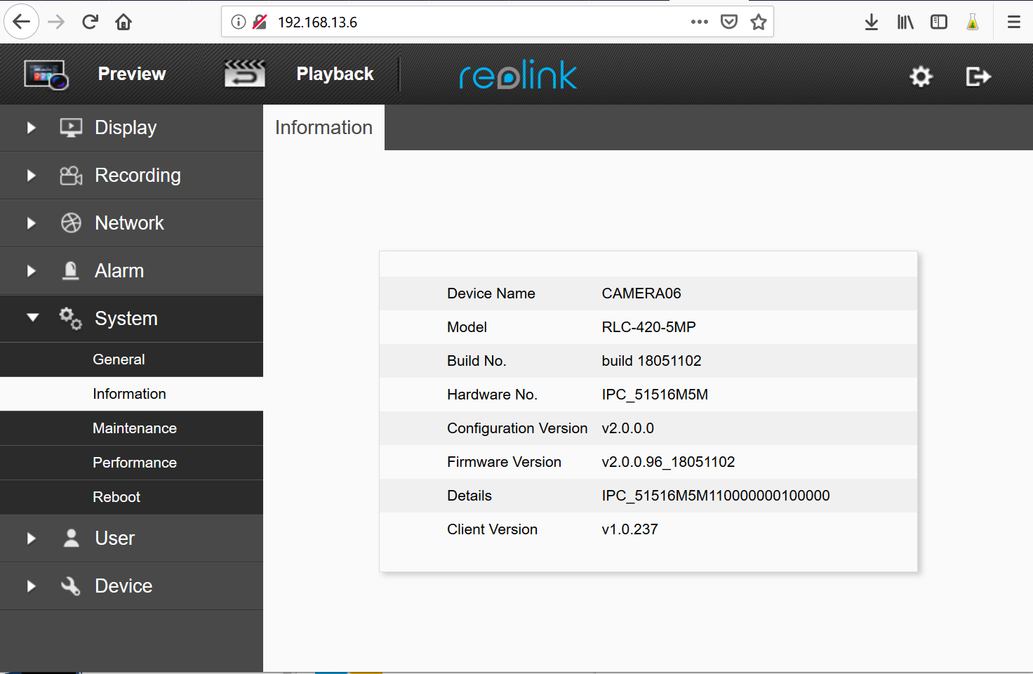 Parce qu’il faut toujours mettre à jour pour des raisons de sécurités et de stabilités, il est nécessaire de faire un tour chez le constructeur pour mettre à jour le système de la caméra, là ou ce n’est pas sérieux de la part de Reolink, c’est que la RLC-420-5MP n’est même pas listée !