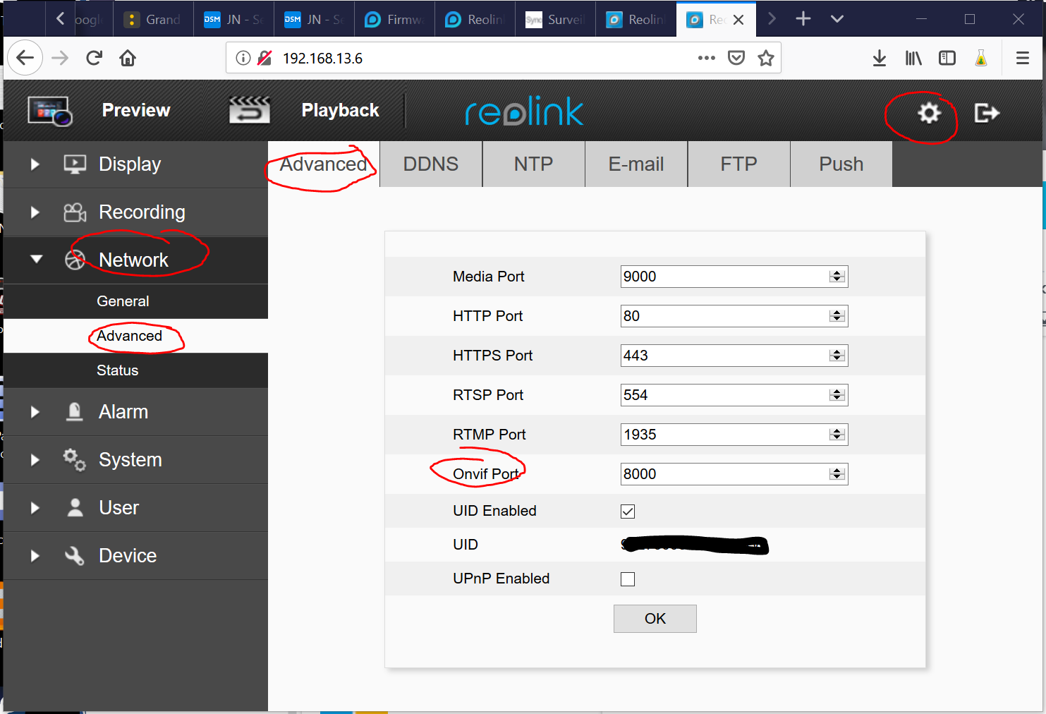 Depuis la caméra, nous allons vérifier le port Onvif, depuis un navigateur connectez vous sur l’ip de votre caméra (ex : http://192.168.13.4)